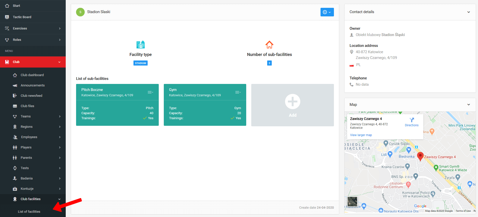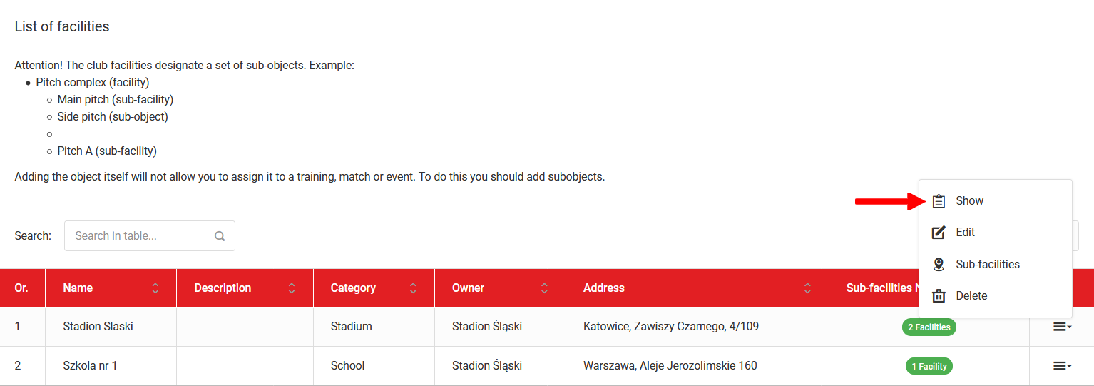 Pro náhled zařízení přejděte v levém menu na: klub klubová zařízení seznam zařízení a vyberte "zobrazit" z menu (poslední sloupec) pro dané zařízení. Z tohoto menu můžete upravovat a mazat dané zařízení.