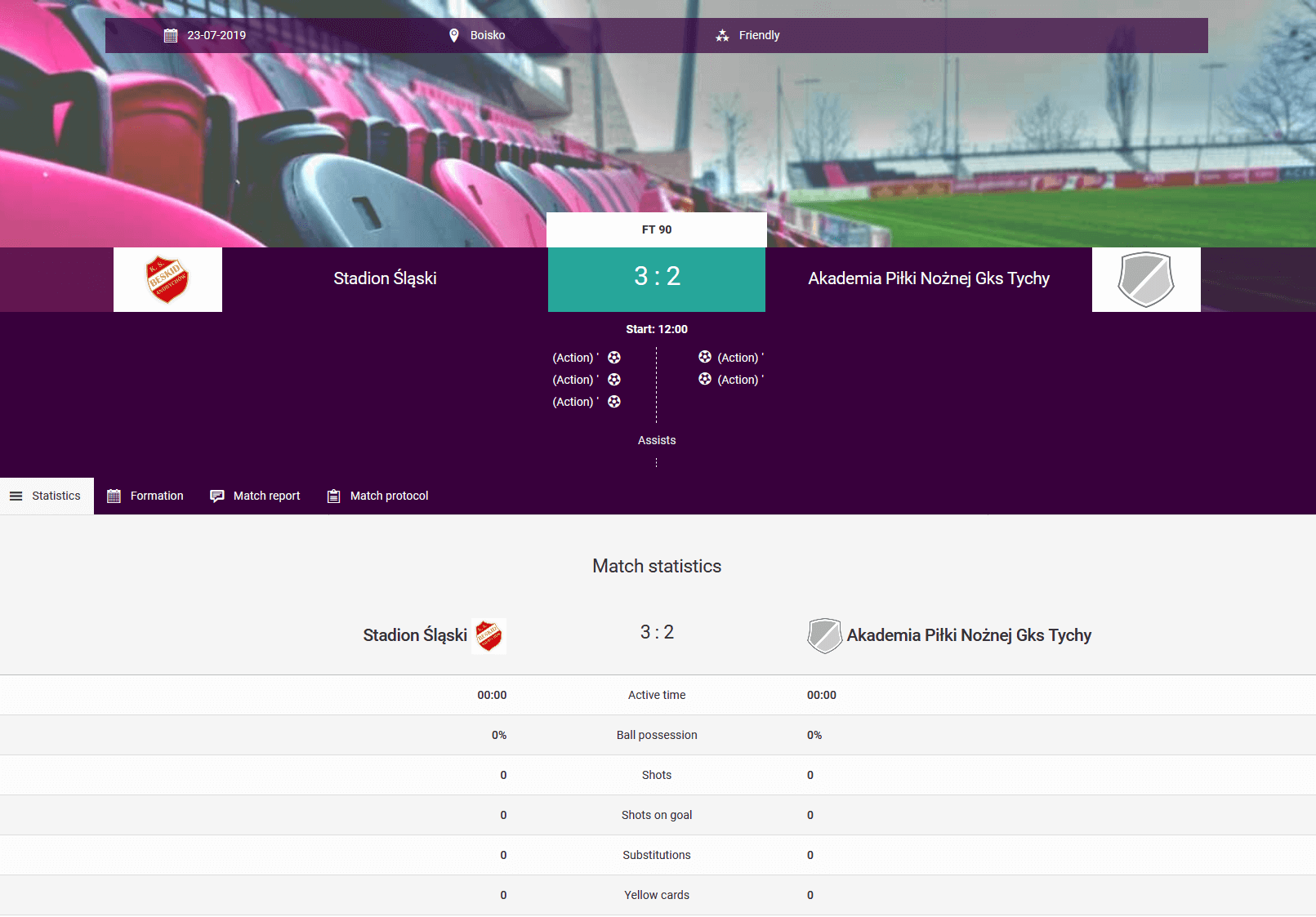 Tato funkce je velmi užitečná pro doplňování výsledků zápasů s velkým počtem gólů nebo ve sportech, kde se skóruje hodně bodů. Abyste se vyhnuli vyplňování extrémně dlouhých zápasových protokolů s výsledkem 22-3 a střídáními, je lepší vyplnit individuální statistiky hráčů. Pro přístup k nim jděte do rozpisu zápasů a v menu zápasu vyberte "Statistiky hráčů v zápase".