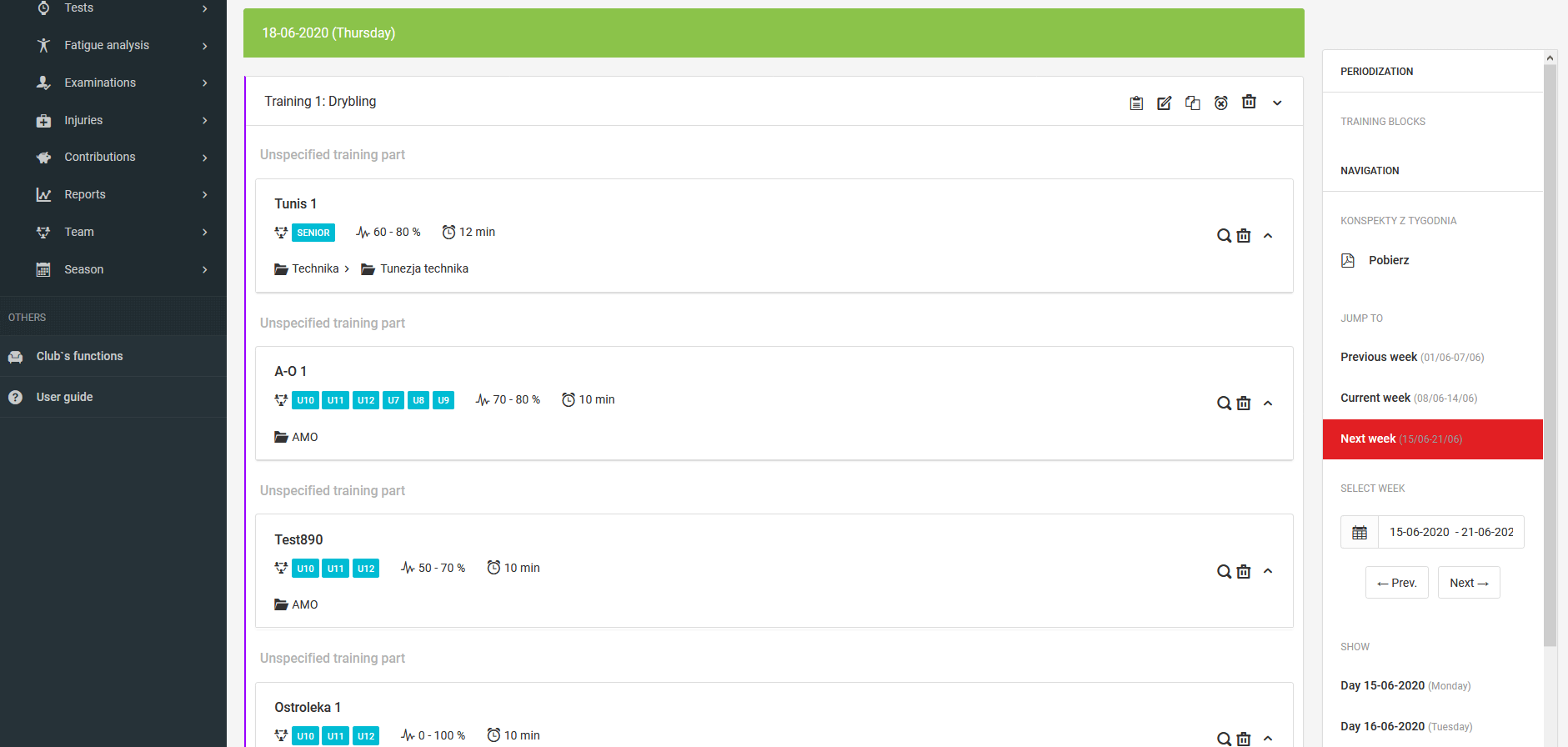 Pořadí cvičení se určuje přetažením cvičení do příslušné části tréninku. Chcete-li to udělat, uchopte cvičení myší a přetáhněte ho na příslušnou část.