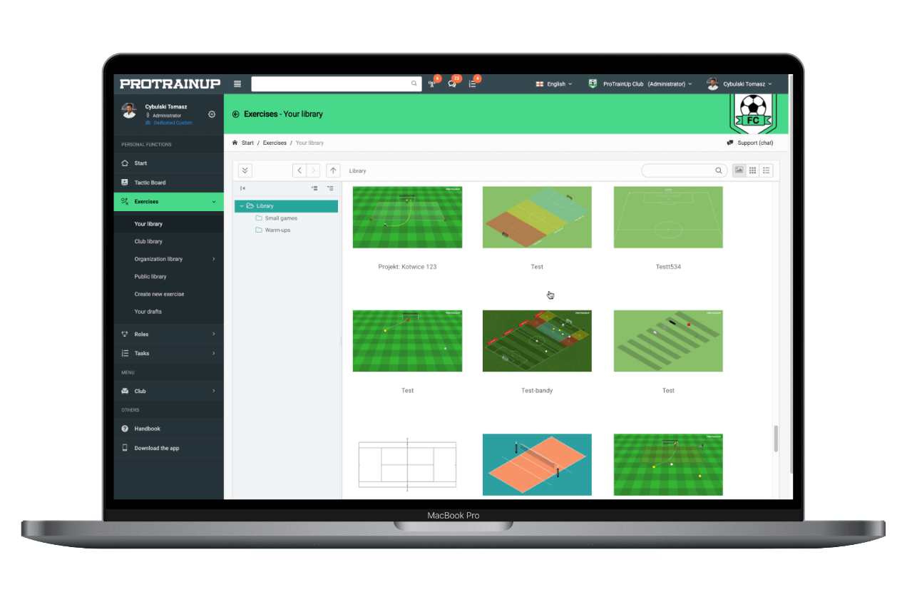 Dzięki rozbudowanemu modułowi bazy ćwiczeń będziesz w stanie zbudować strukturę folderów i ćwiczeń dostosowana do potrzeb Twojej akademii.