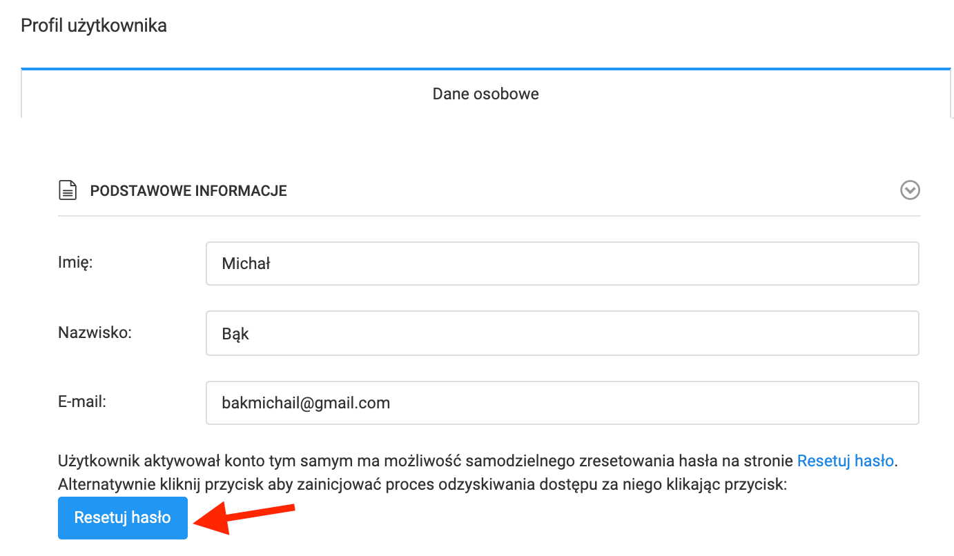 Pamiętaj jednak, że edycja danych użytkownika z poziomu Twojego konta, możliwa jest jedynie do momentu aktywowania konta przez zawodnika. W momencie, kiedy aktywuje on swoje konto utracisz możliwość zmiany loginu i hasła zawodnika. W takiej sytuacji zyskasz jednak możliwość wywołania funkcji resetu hasła zawodnika.